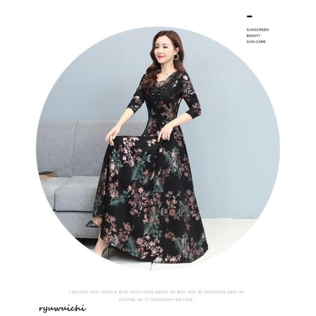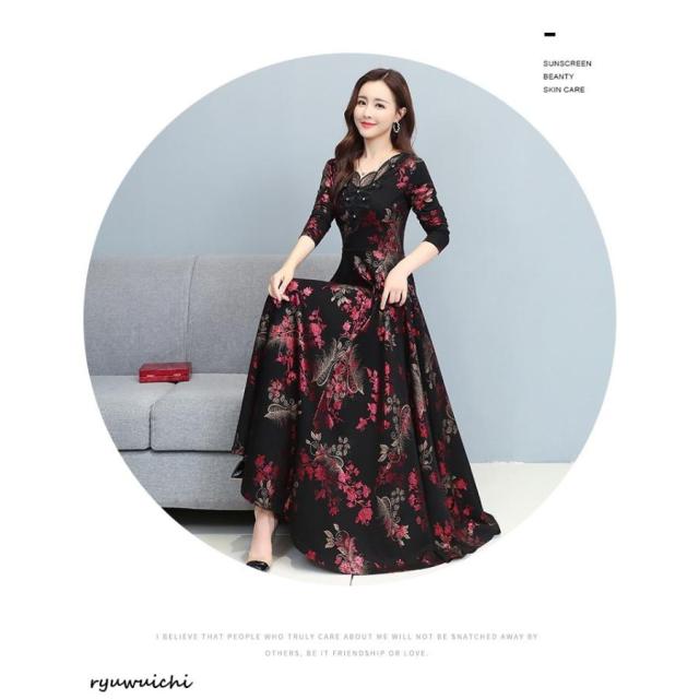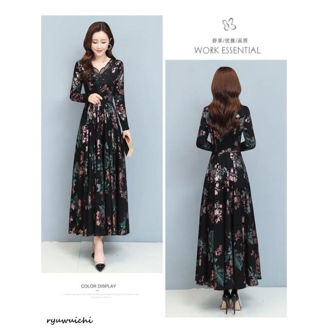 ワンピース 花柄 長袖 ウエスト切替 ファスナー ロングワンピース セレブコーデ 母親 卒園式 学校行事 ディナー ワインイベント お呼ばれ パーティースタイル 派手 きれいめ お出かけ ゴージャス ママスタイル エレガント 食事会 二次会 大人可愛い 発表会 演奏会