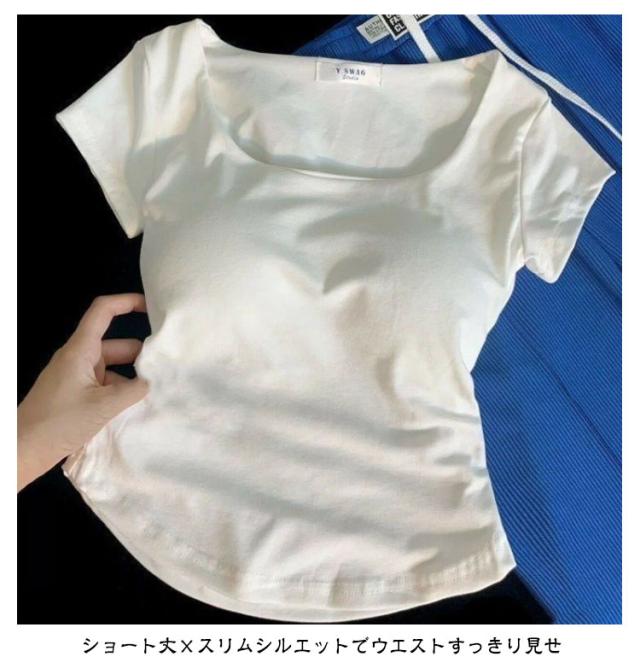 | 短丈Tシャツ レディース スクエアネック セクシー・タイト ワイヤレス締め付け感がない 固定型胸パッドで、裸のようなフイット感 ショート丈×スリムシルエットでウエストすっきり見せ デニム、ミニスカ、カーゴパンツなどと相性抜群! | |