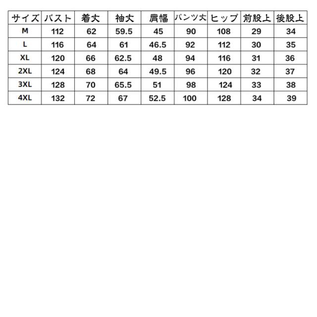 | サイズ | M L XL 2XL 3XL 4XL |