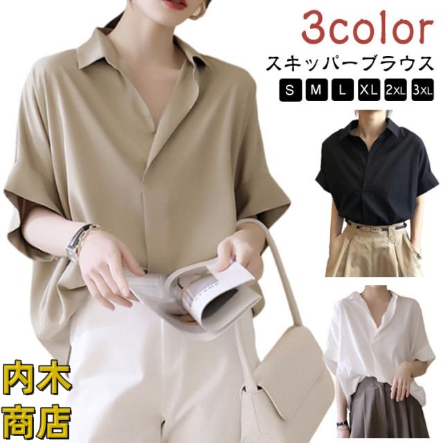 ブラウス スキッパー ゆったり 半袖 トップス 50代 カジュアル 夏 シャツ スキッパーシャツ 着痩せ 抜け感 半袖 抜襟 大人 きれいめ スキッパーブラウス 30代 ドルマン レディース ブラウス 40代 シャツ ブラウス 20代