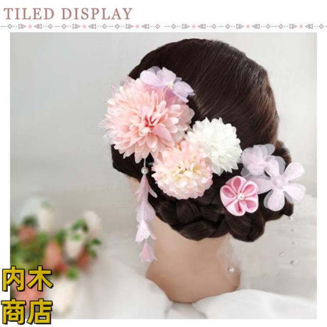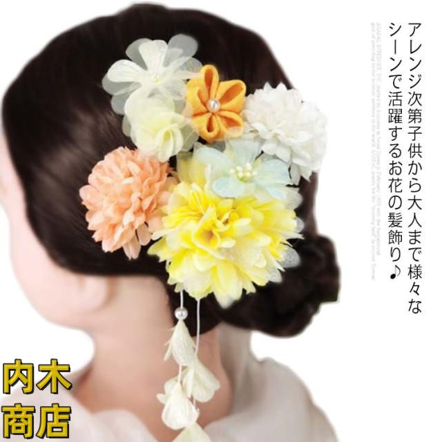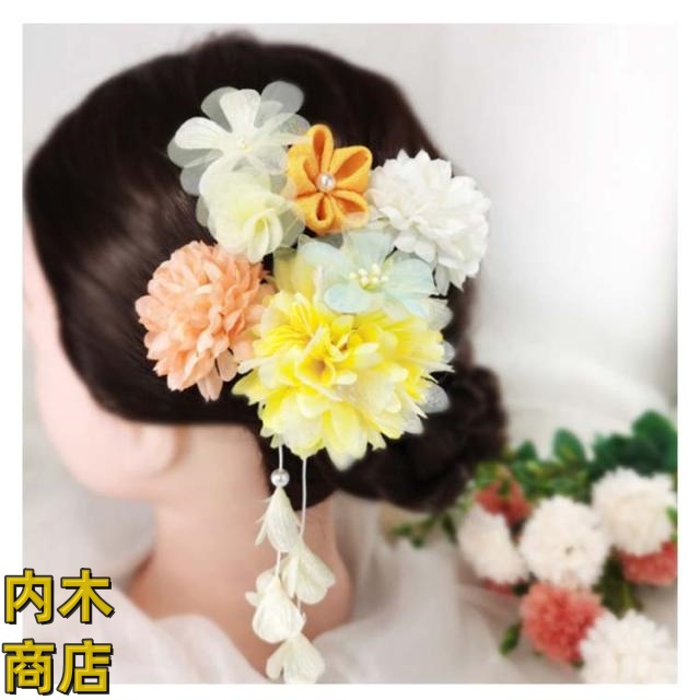 | アレンジ次第子供から大人まで様々なシーンで活躍するお花の髪飾り♪ 成人式の振袖や卒業式の袴にピッタリの髪飾りセット。 ふんわりマムやダリア、つまみ細工で作られたお花、歩くたびに揺らめく下がり飾りなどがアレンジされています。 豪華な雰囲気が溢れる和装髪飾りで着物のオシャレに差をつけます。 結婚式・発表会・卒業式・入学式・七五三・前撮り・お宮参りなど晴れの日の着物スタイルをより一層引き立ててくれる髪飾り。 | |