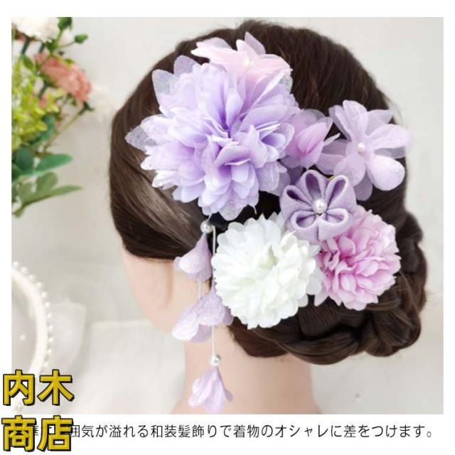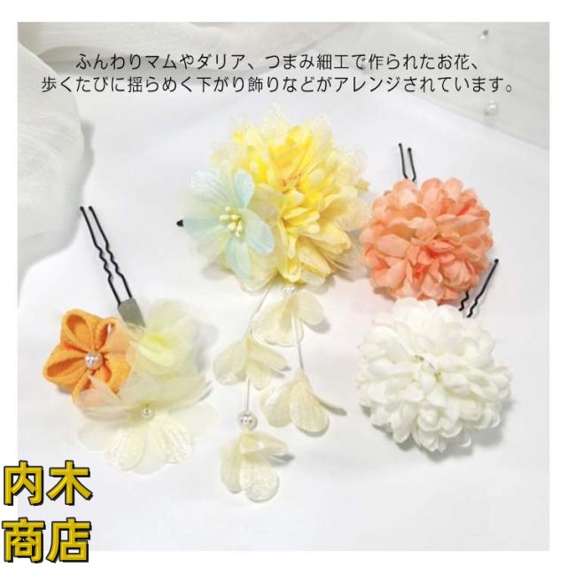 袴 七五三 造花 ヘッドドレス つまみ細工 着物 花飾り 菊 下がり飾り 花 和装 ダリア 成人式 4点セット 浴衣 髪飾り 卒業式 和風 振袖 結婚式 ポンポンマム ヘアアクセサリー ちりめん