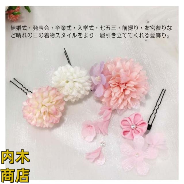 レビュー高評価 軽量仕様 季節限定アイテム ギフトにも最適 ポンポンマム 卒業式 菊 ダリア 髪飾り ヘッドドレス 和風 下がり飾り 振袖 袴 成人式 花飾り 七五三 ちりめん 浴衣 着物 つまみ細工 ヘアアクセサリー 結婚式 和装 花 造花 4点セット