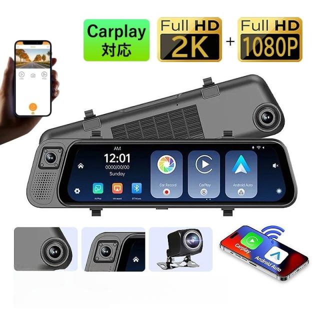 ドライブレコーダー ミラー型 前後 車内 3カメラ タッチパネル 9.6インチ Carplay対応 ドラレコ フルHD 4K 駐車監視 170度広角