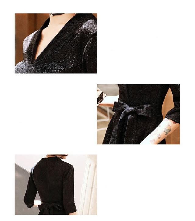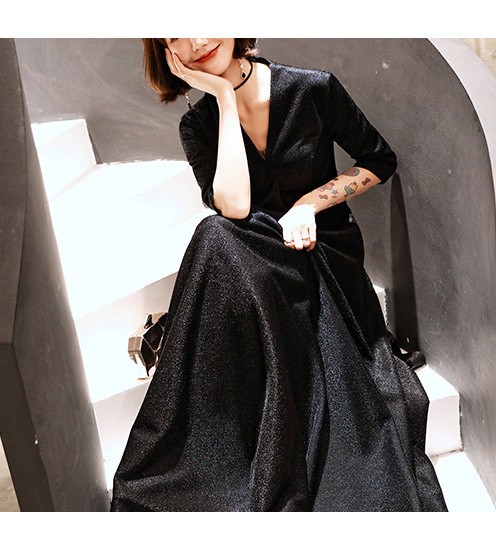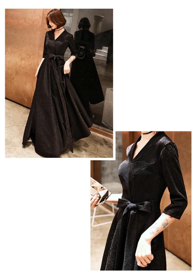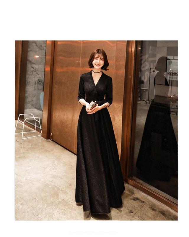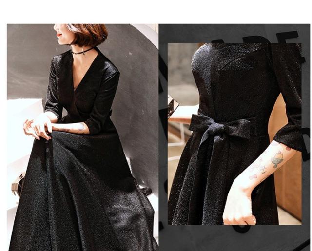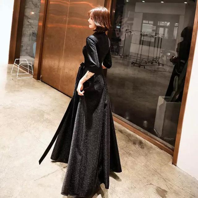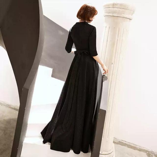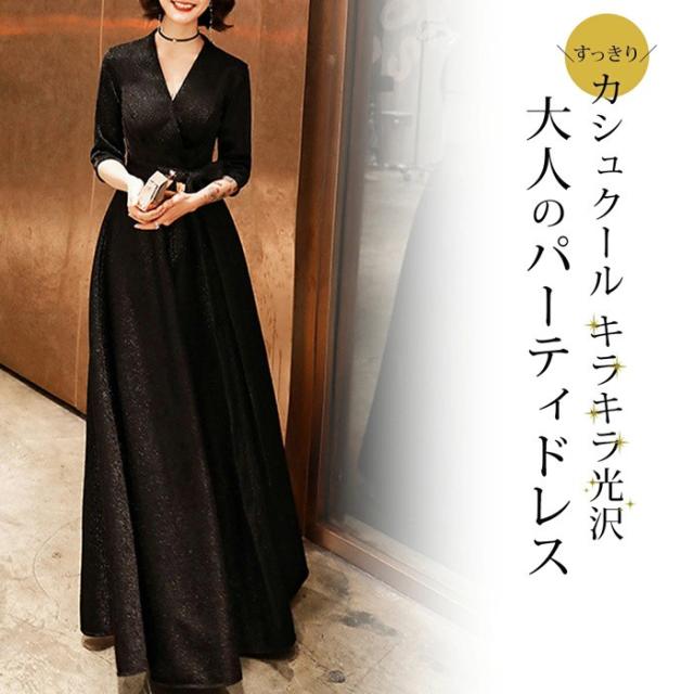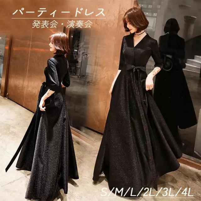 パーティードレス かっこいい 個性的 ロング 黒 半袖 キラキラ 大きいサイズ カシュクール 結婚式 演奏会 ロングドレス フォーマル マキシ丈 Aライン フレア 袖あり シンプル 無地 リボン 大人可愛い 春 秋 冬 ブラックドレス 2XL お呼ばれ ドレス ワンピース 韓国 dd120x0x0m6