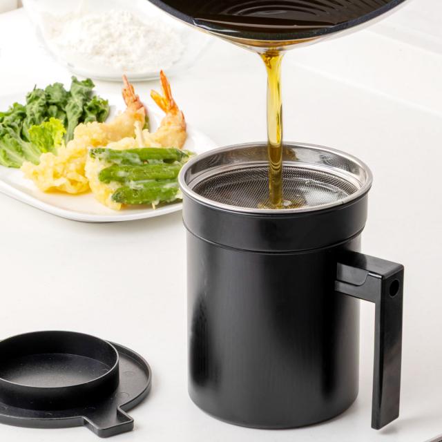 《 0.5L キッチンツール 台所用品 キッチン小物 キッチン雑貨 フィルター付き 濾過 濾し網付き コシ網付き 酸化予防 汚れ予防 臭い予防 便利 役立つ おすすめ フタ付き 蓋付き 鉄製 小さめ コンパクト 小さい フッ素樹脂加工 お手入れ簡単 ブラック シンプル 》