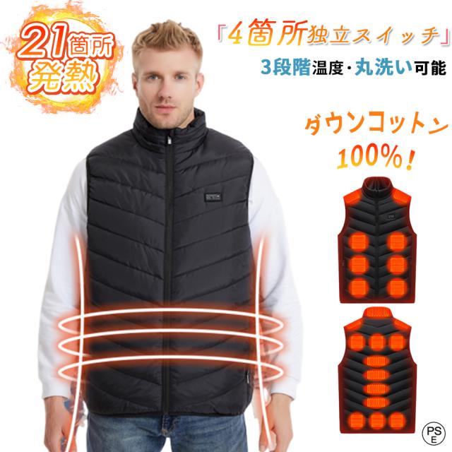 電熱ベスト レディース 日本製ヒーター 防寒ベスト バイク 21個ヒーター ダウンコットン100% 3段階温度 速暖 4箇所独立スイッチ 温度調整 ダウンベスト メンズ USB給電 発熱 大きいサイズ 丸洗い 釣り ゴルフ 屋外作業 男女兼用 作業服 発熱ベスト 防寒グッズ 敬老の日