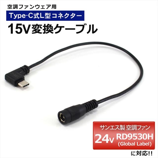 サンエス 2025年 24V RD9530H Global Label 対応 変換アダプター 15V Type-C L型 空調ウェア ファン付き作業服 モバイルバッテリー バッテリー 変換ケーブル USB-C タイプC 空調風神服 海外版 海外製 グローバルラベル 空調ファンウェア 空調ファン 【15V-C】