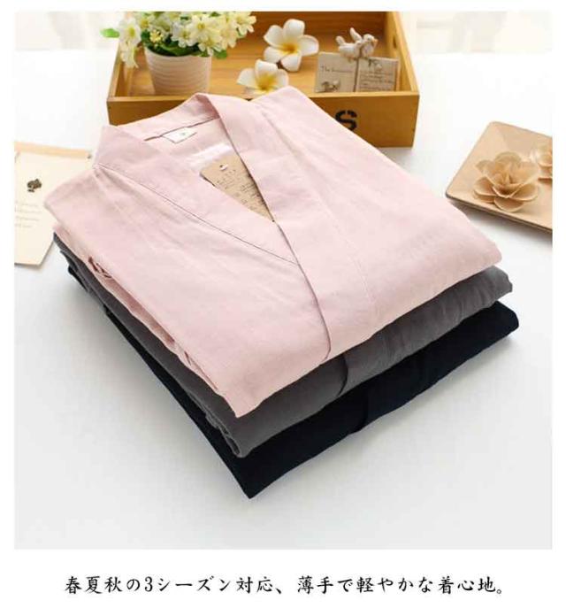 | 綿ダブルガーゼで快適な甚平パジャマセット 春秋にぴったりの薄手デザイン 綿のダブルガーゼ素材で作られた、肌に優しく通気性抜群の和風パジャマセット。 春夏秋の3シーズン対応、薄手で軽やかな着心地。 五分袖トップスと長ズボンの上下セットで、ゆったりリラックスできるデザイン。 男女兼用でペアコーデに最適、シンプルな無地デザインが特徴。 部屋着としても睡眠時にも快適で、敏感肌の方にもおすすめ。 | |