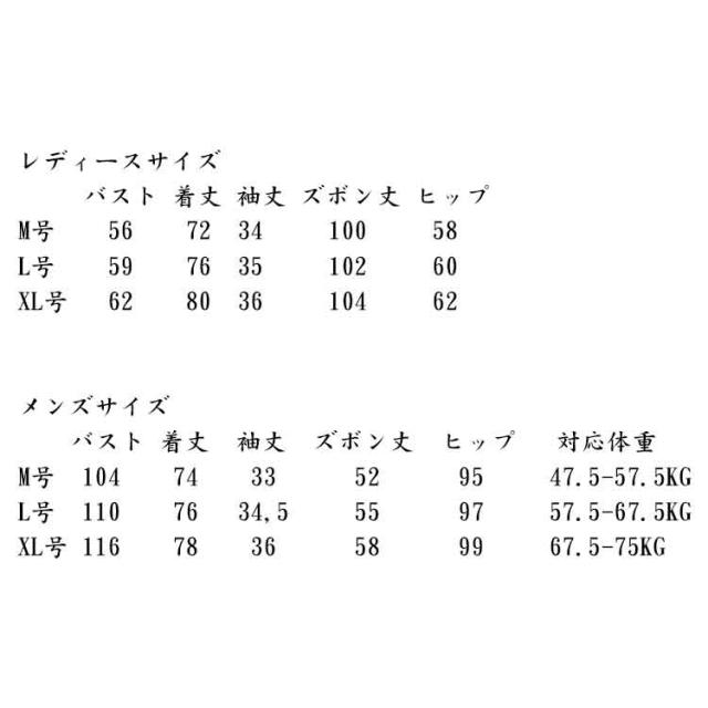 | 色 | ネイビー(男))*上下セット ダークグレー(男))*上下セット ピンク(女))*上下セット |