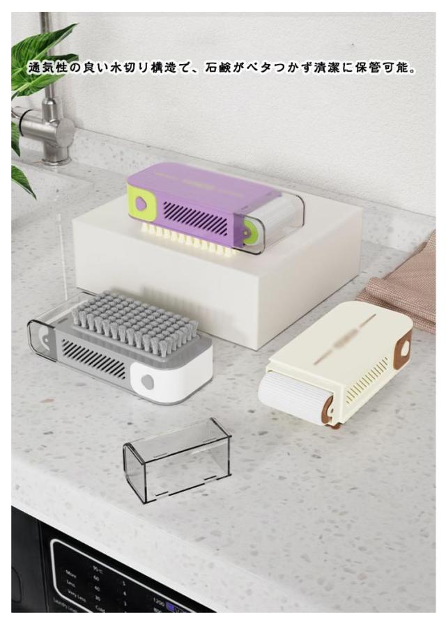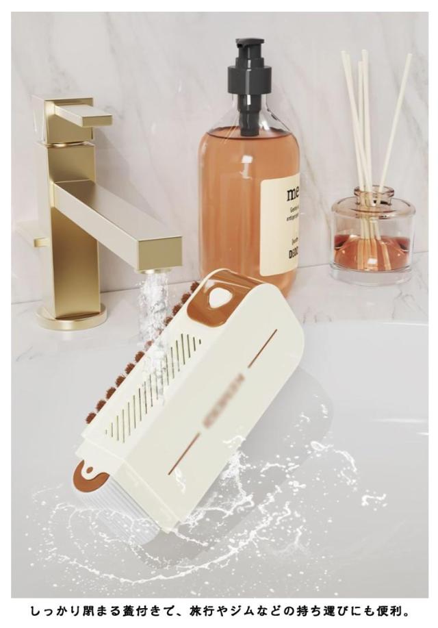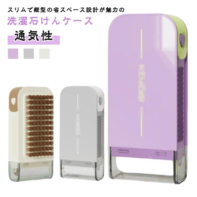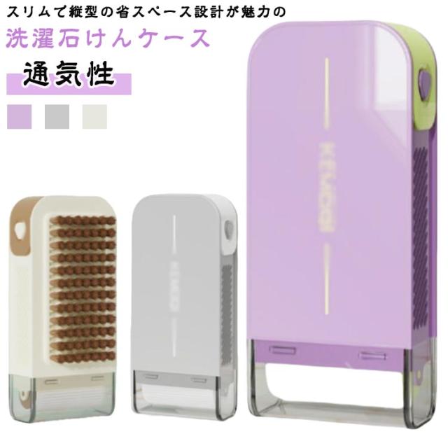 石鹸ケース 洗濯用品 縦型 せっけんケース 洗濯ブラシ 持ち運び スリム ブラシ付き バネ付き 洗濯石鹸 蓋付き 石鹸収納 保管ケース 泡立つ洗濯せっけんケース 石けんケース コンパクト 通気性 水切り