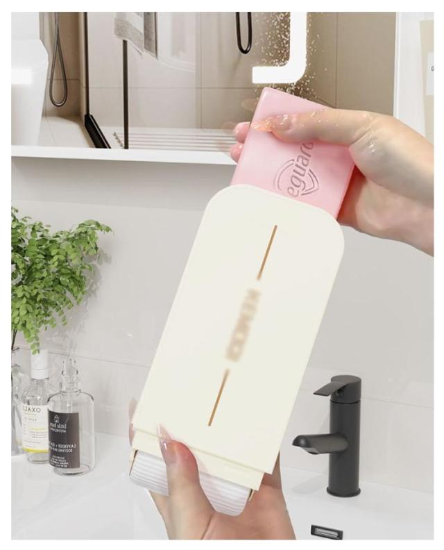 | スリムで縦型の省スペース設計が魅力の「洗濯石けんケース」。 洗濯ブラシ一体型で、汚れた部分をすぐにこすり洗いでき、時短&便利! 底に回転ローラーが付いているのでコロコロ転がすだけでしっかり泡立ちます! ブラシが付いており、頑固な汚れや部分洗いに最適。 バネ付のフタなので細かくなったせっけんも無駄なく使えて便利です! 通気性の良い水切り構造で、石鹸がベタつかず清潔に保管可能。 しっかり閉まる蓋付きで、旅行やジムなどの持ち運びにも便利。 日常使いはもちろん、外出先や出張、学校・部活などの着替え用にもおすすめです。 | |