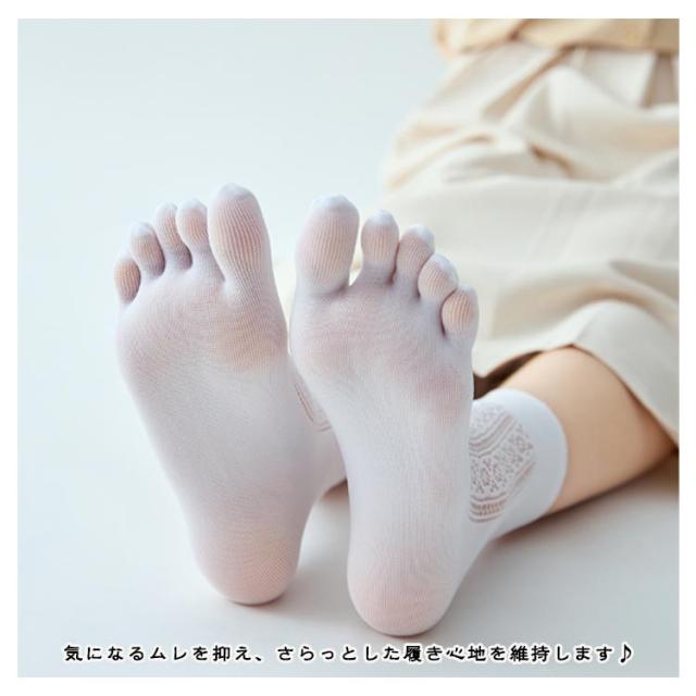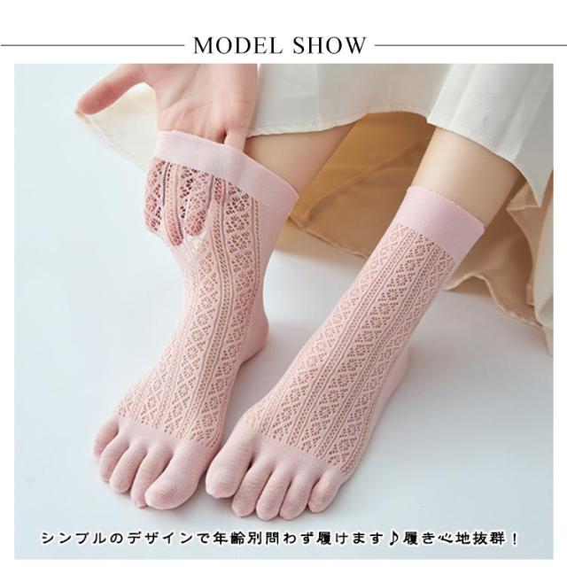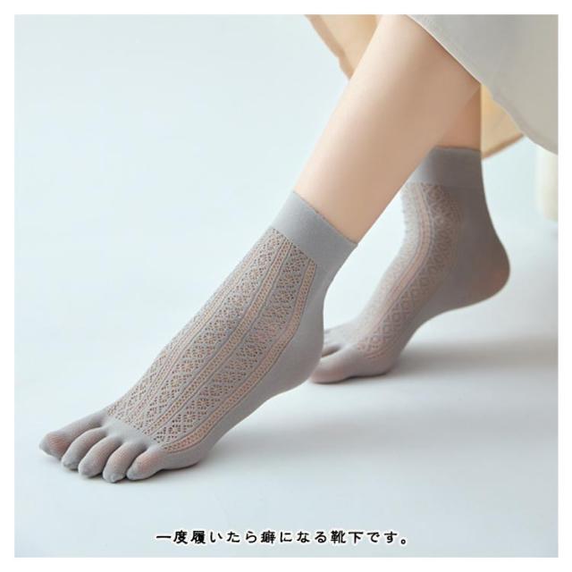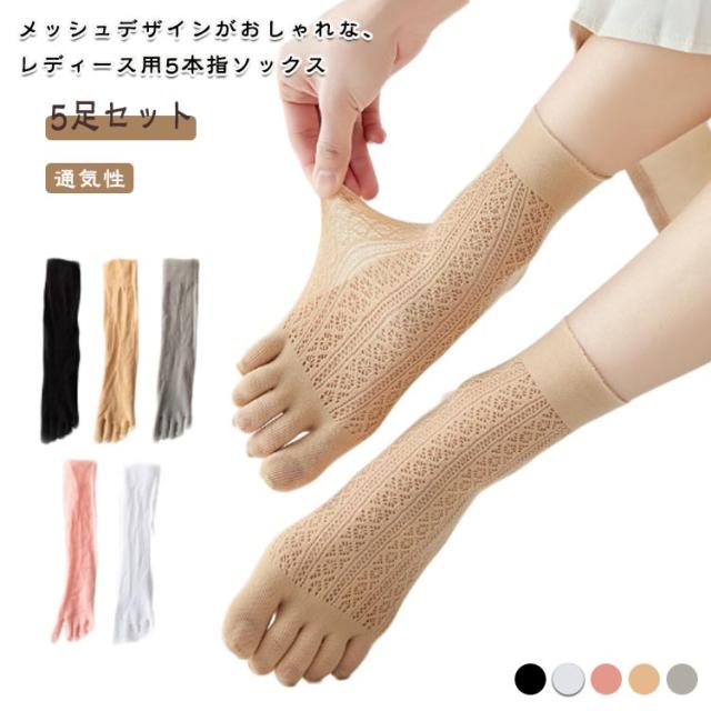 | 5足セット!メッシュデザインがおしゃれな、 レディース用5本指ソックス シンプルのデザインで年齢別問わず履けます♪履き心地抜群! 気になるムレを抑え、さらっとした履き心地を維持します♪ 一度履いたら癖になる靴下です。 | |