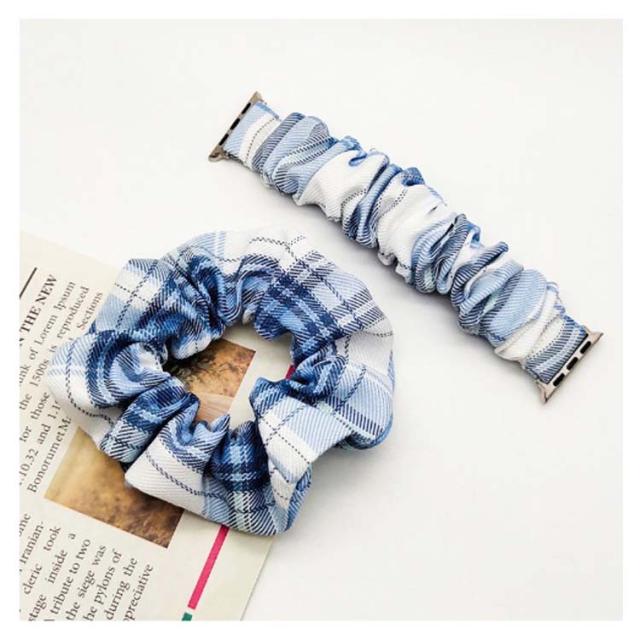 腕時計 Apple 用 レディース シュシュ アップルウォッチ フリル 時計 スマートウォッチ ベルト Watch かわいい 睡眠 防水 韓国 おしゃれ Apple Android SE サムスン Galaxy Watch fitbit versa iPhone チェック柄 38mm 40mm 41mm 42mm 44mm 45mm 20mm