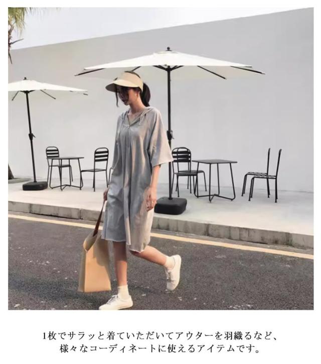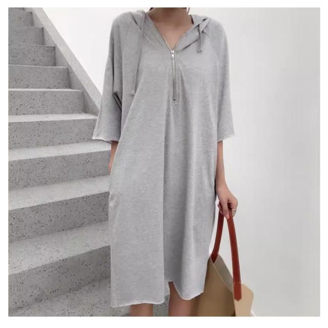 トップス レディース 春夏 夏 ワンピース 春 tシャツ ロングTシャツ オーバー ワンピースTシャツ ビッグtシャツ 5分袖 tシャツ 夏 カットソー フード付 無地 五分袖 ビッグシルエット Tシャツ 大きいサイズ トレーニング