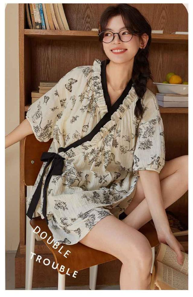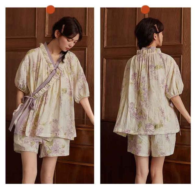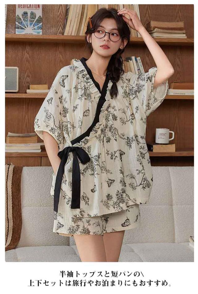 | カップ付きで楽に着られる甚平パジャマ Vネックと和服風デザインが女性らしい雰囲気を演出 カップ付きデザインで下着いらず、リラックスして着られるレディースパジャマセット。 軽量で通気性の高い生地を使用し、春夏シーズンに快適な着心地を提供。 ゆったりとしたシルエットで動きやすく、部屋着としても外出着としても活躍 半袖トップスと短パンの上下セットは旅行やお泊まりにもおすすめ。 | |