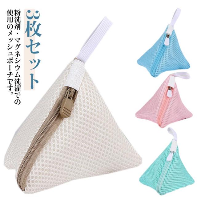 洗濯ネット 洗剤ネット 三角型 洗剤ネット 耐久性 3枚セット 粉末洗剤 粉石鹸ネット 粉洗剤用 マグネシウム入れ ランドリーネット ループ付 粉せっけんネット マグネシウムネット 家庭用 二重生地