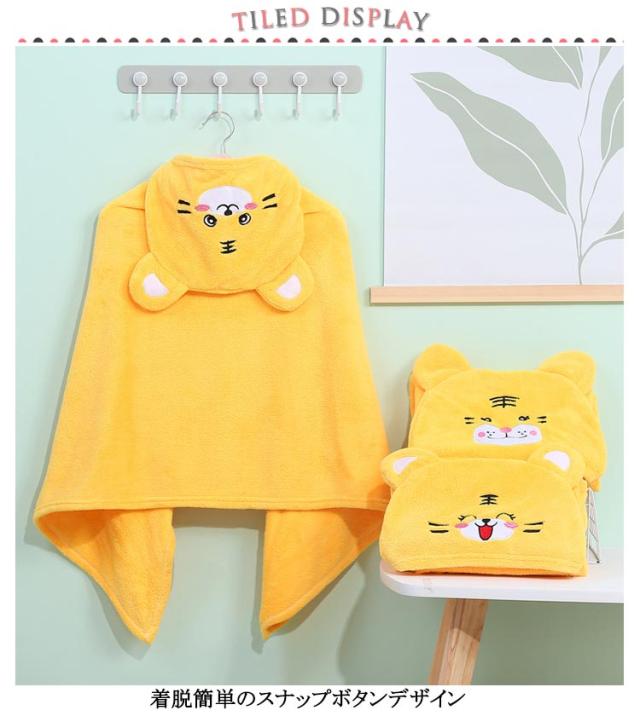 | フード付きバスタオル キッズ、子供用 ベビーのバスローブ、バスポンチョ 着脱簡単のスナップボタンデザイン しっとり柔らか素材 キッズの繊細な皮膚を包み込む優しい素材 | |
