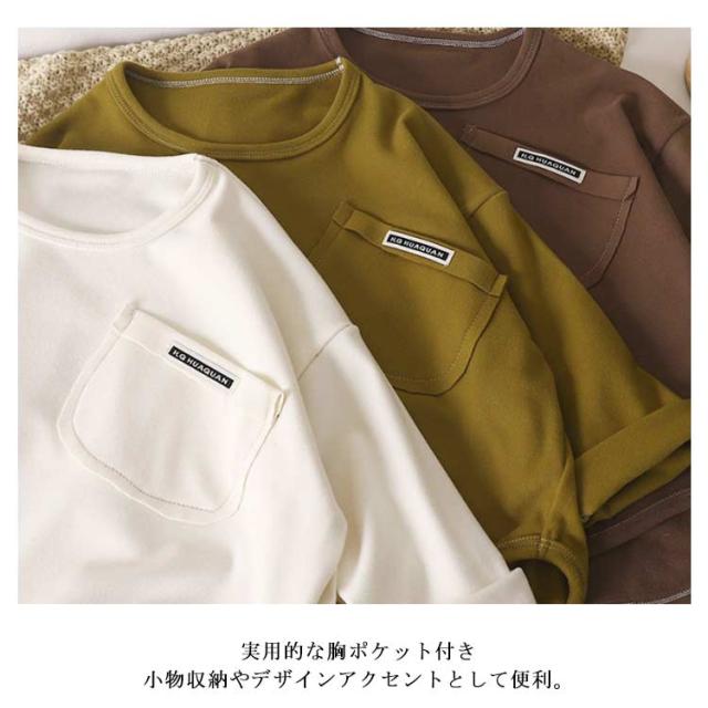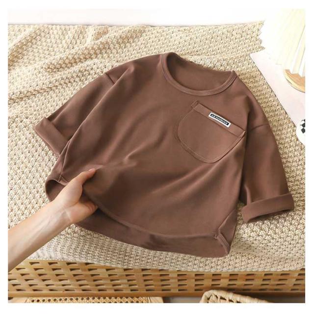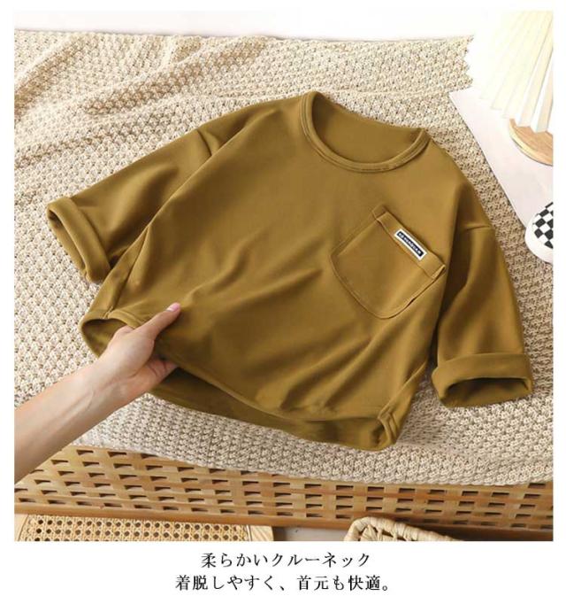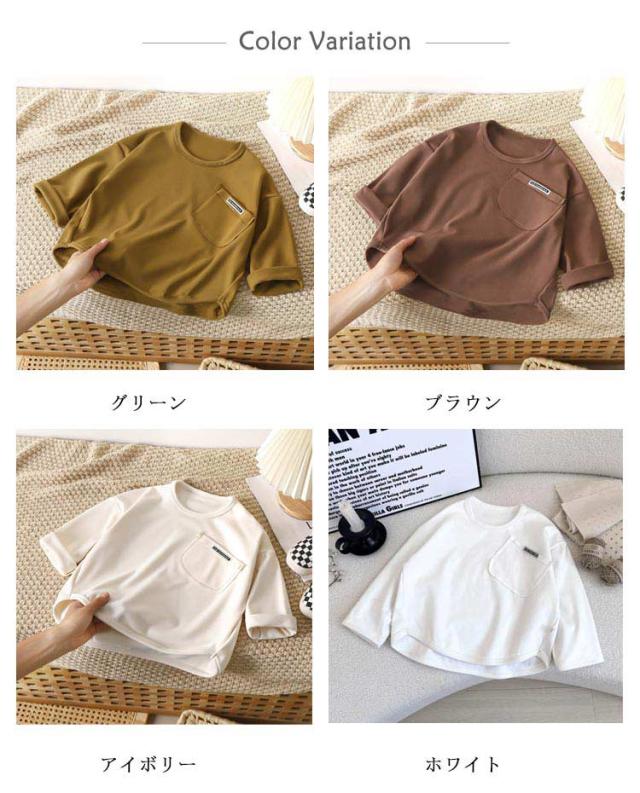 インナー キッズ 長袖 カットソー ポケット付き 無地 ロンT シンプル 長袖Tシャツ トップス グリーン ジュニア 子供服 長袖Tシャツ 通学 お出かけ 男の子 女の子 秋 冬 通園 ブラウン アイボリー