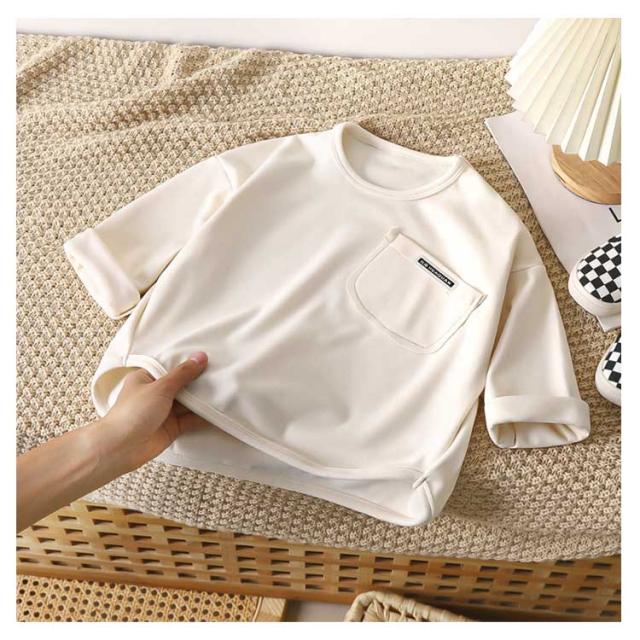 | 長袖Tシャツ 子供用 ふんわり暖かいデロン素材 肌に優しく、伸縮性が高く、秋冬の防寒インナーに最適。 ゆったりシルエット リラックスフィットで動きやすく、おしゃれに着こなせます。 実用的な胸ポケット付き 小物収納やデザインアクセントとして便利。 柔らかいクルーネック 着脱しやすく、首元も快適。 ストレッチ性抜群 アクティブなキッズにもぴったり。 | |