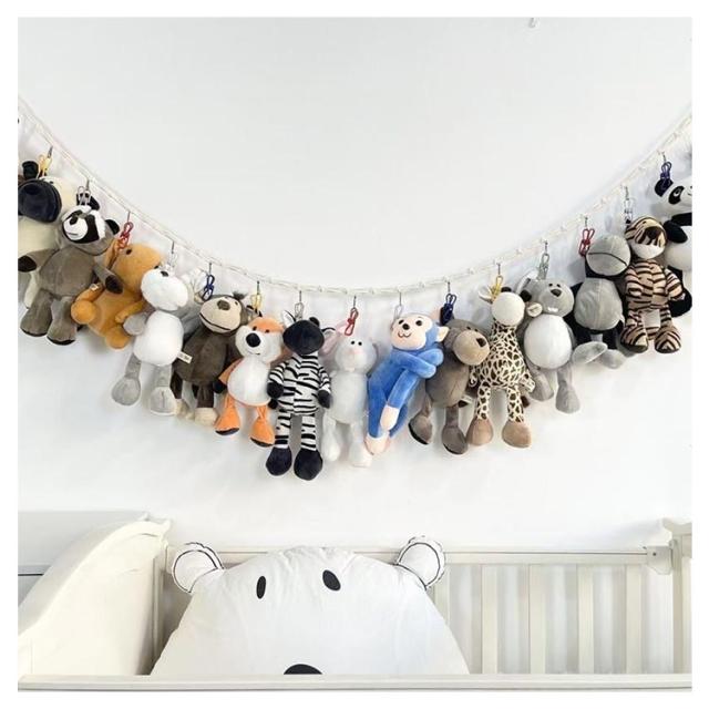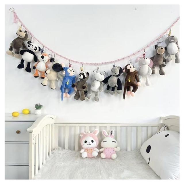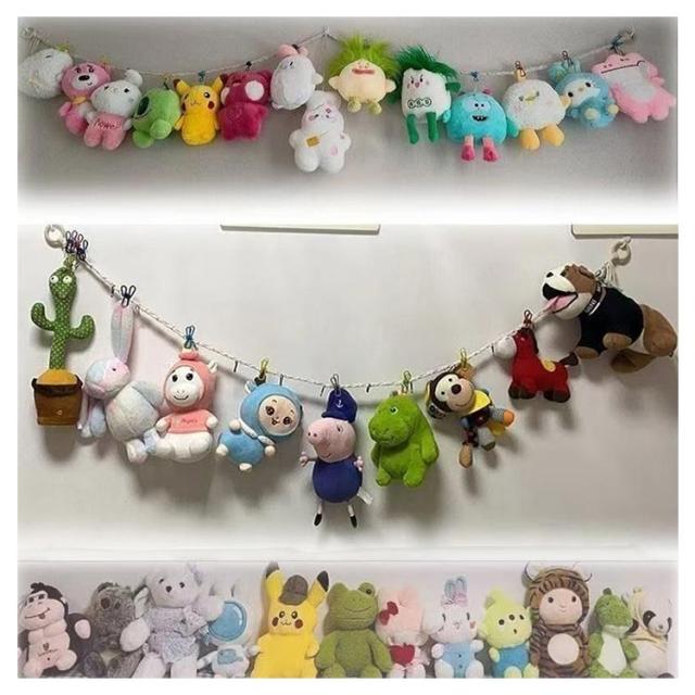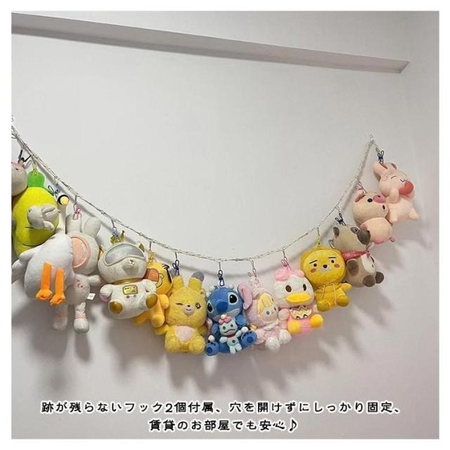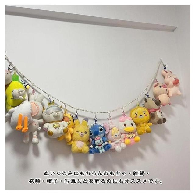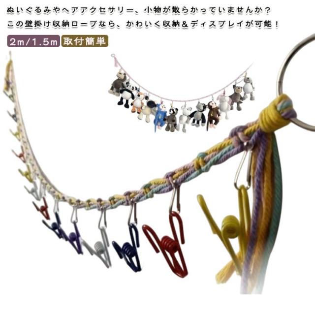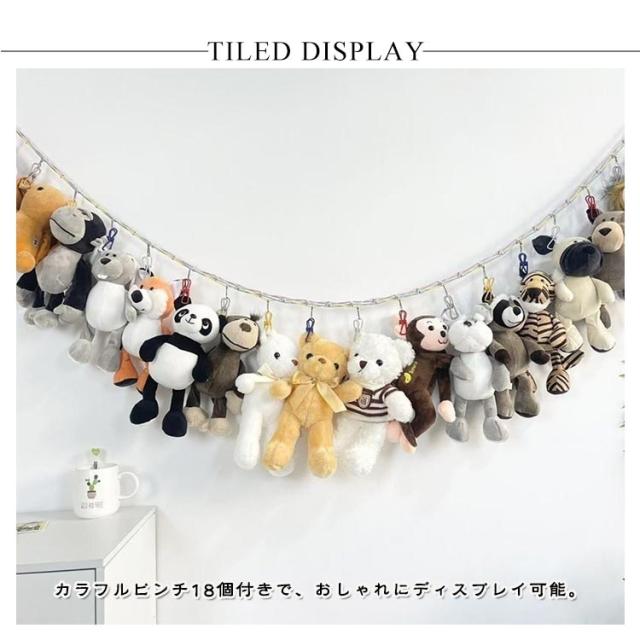 18ピンチ付き ぬいぐるみ収納ロープ 収納 吊り下げ ぬいぐるみ 子供部屋 ハンモック 壁掛け ロープ 跡が残らない 省スペース 取付簡単 カラフル ぬいぐるみ ウォール ロープ ディスプレイ かわいい 整理整頓 2m 1.5m