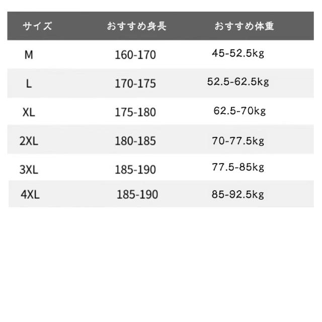 | サイズ | M(タイプA) L(タイプA) XL(タイプA) 2XL(タイプA) 3XL(タイプA) M(タイプB) L(タイプB) XL(タイプB) 2XL(タイプB) 3XL(タイプB) |
