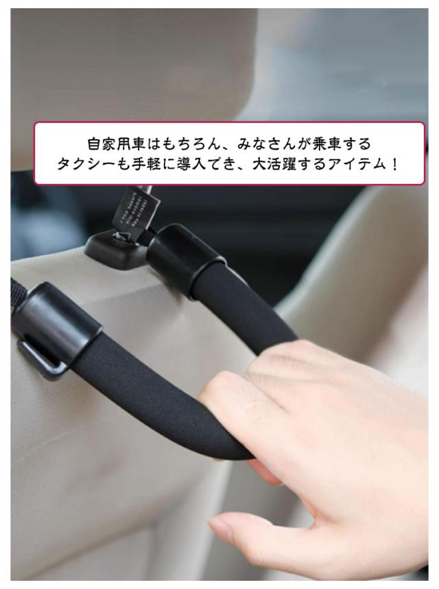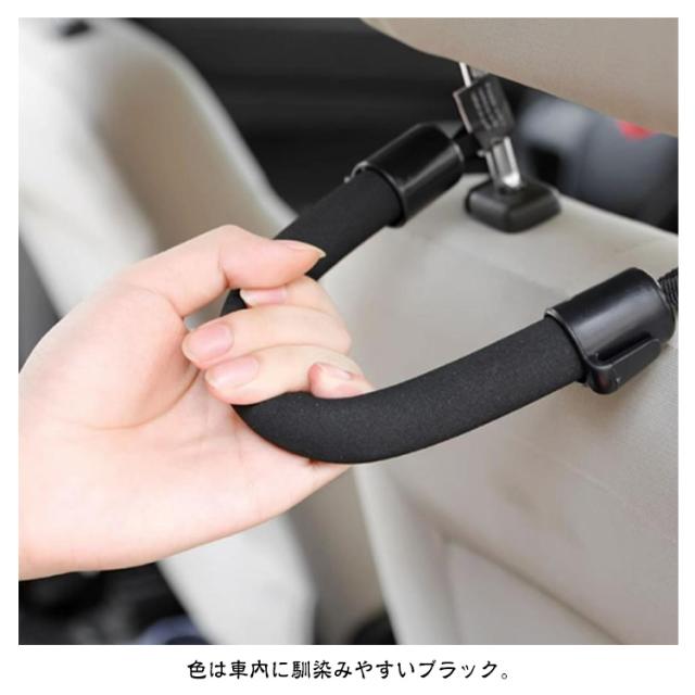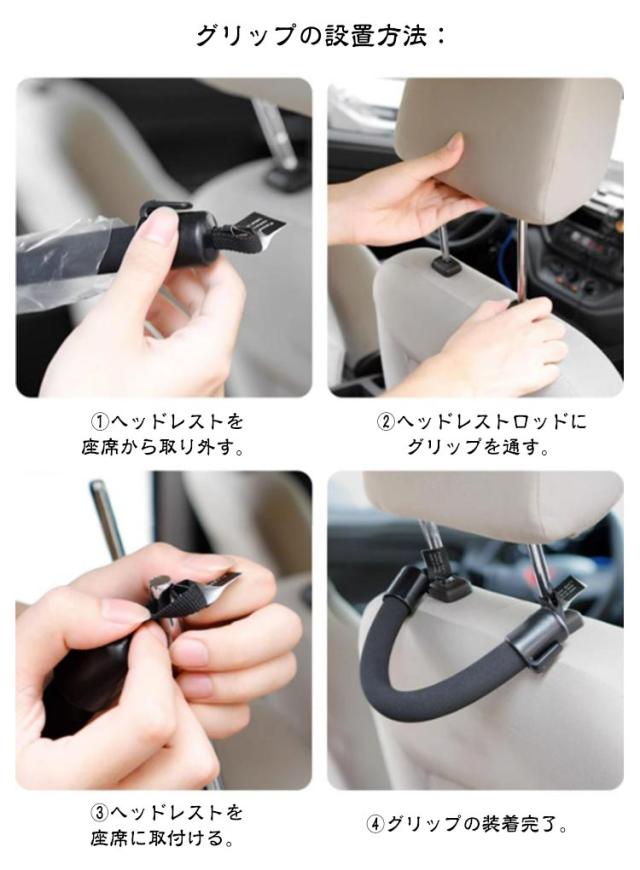 | 車への乗り降りをサポートしてくれる車用のアシストグリップです。2個セット ヘッドレストを外して取り付けるだけで、工具不要で1分で取り付けができます。 色は車内に馴染みやすいブラック。 スタイリッシュなので車内に溶け込み、車内の見た目を損ないません。 自家用車はもちろん、みなさんが乗車するタクシーも手軽に導入でき、大活躍するアイテム! グリップ部分は滑りにくいEVA素材を使用しており柔らかな手触りで滑りにくく、掴みやすい構造です。 左右には、ビニール袋の荷物がかけられる便利なフック付き、 フックはABS製で、高強度、変形しにくい、耐久性、耐摩耗性、耐高温性、耐腐食性など。 傘や買い物袋などをかけておくことができます。 車の乗り降りの際につかむことで、体の揺れや不安定さを効果的に軽くし、快適性と安定性を向上させます。 お子様やご高齢の方、妊婦の方など乗り降りが負担に感じる方、車高の高い車に乗っておられる方にも便利です。 グリップの設置方法:1.ヘッドレストを座席から取り外す。2.ヘッドレストロッドにグリップを通す。3.ヘッドレストを座席に取付ける。4.グリップの装着完了。 | |