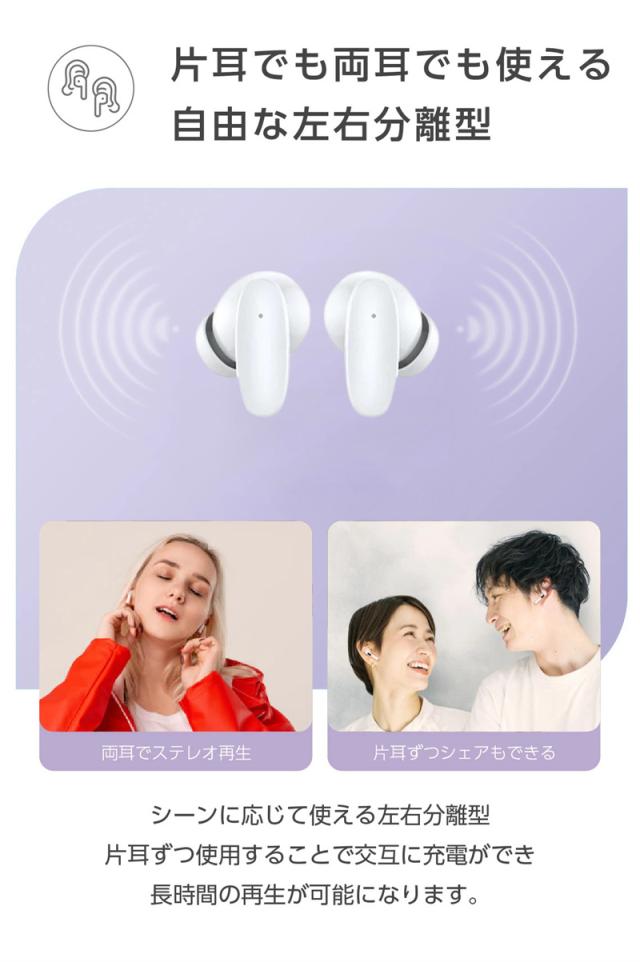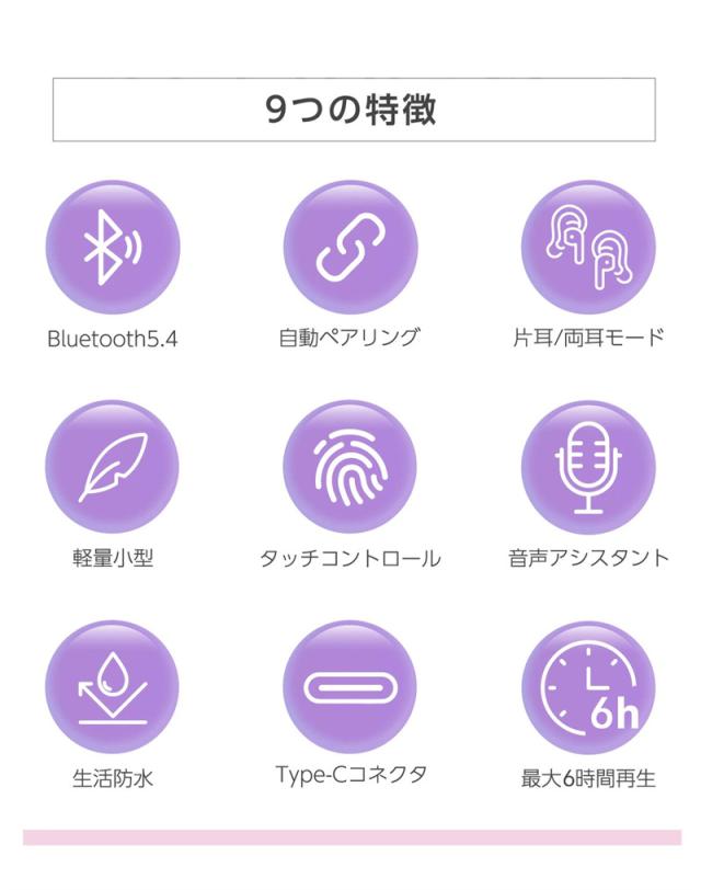 【設定は自動、切り替えはシームレス】 ケースからイヤホンを取り出すだけで電源が入るので電源ボタンを押す必要がありません。イヤホン同士のペアリングが自動的にされるので、あとはデバイスをワンタップするだけで簡単にペアリングが完了です。 【収納ケース一体型】 充電機能付きの収納ケースなので、イヤホンの保管と同時に繰り返しして充電することもできます。 【Hi-Fi高音質】 AACコーデックを採用し、遅延がなく、 音楽や映画などの様々なサウンドを、 音も粒も感じれるほどクリアであなたの耳に届けします。 【Bluetooth5.4技術・0.06s低遅延ワイヤレス】 このワイヤレスイヤホンは最新のBluetooth 5.4チップを搭載し、Bluetooth 5.3に比べて電力消費を削減しつつ安定性を保ち、通信速度は3倍、範囲は6倍、容量は10倍に向上しました。 音声遅延が改善され、映像と音のずれが減少し、ゲームプレイ時の違和感も軽減されます。 また、ゲームモードに切り替えると、ワイヤレス性能が約0.06秒向上し、臨場感を体験できるだけでなく、迅速な対応が可能になります。 【完全タッチ型】 進化したタッチ式bluetoothイヤホン、耳元を軽くタッチするだけで、音楽再生/一時停止、通話開始/終了/拒否/次の曲/Siri起動/リダイヤルなどの操作をすべて実現可能。最新の両耳通話技術より両イヤホンハンズフリー通話できます。左右分離型の為、片耳でも両耳でも使用可能です。 【小型・軽量】 人間工学に基づいたデザインでしっかりフィットします、装着感も快適です。 約3gの軽さで、耳に負担を与えません。 高級感があり、友達、恋人へのプレゼントとして最も良い商品です。 |