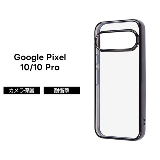 Google Pixel 10 ケース クリア 耐衝撃 グーグルピクセル10 Pixel10 GooglePixel 10pro メタリック ブラック 透明 ソフト スマホケース