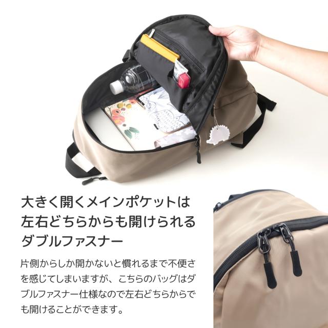 片側からしか開かないと慣れるまで不便さを感じてしまいますが、こちらのバッグはダブルファスナー仕様なので左右どちらからでも開けることができます。