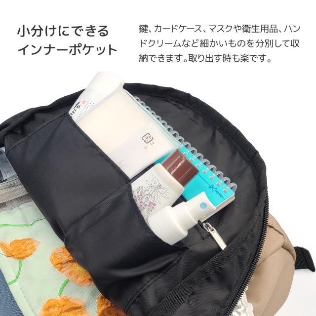 財布や鍵など外ポケットに入れておくのは少し不安な貴重品も安心して入れられます。