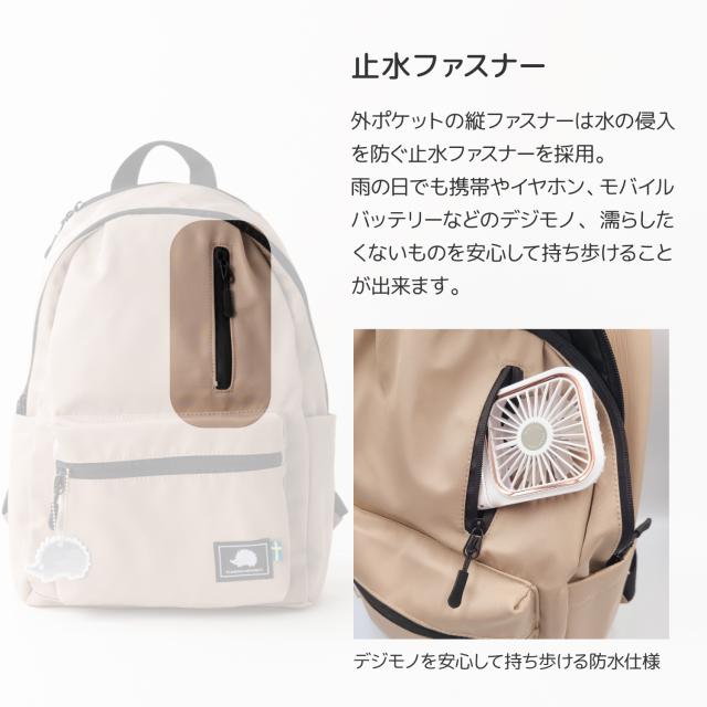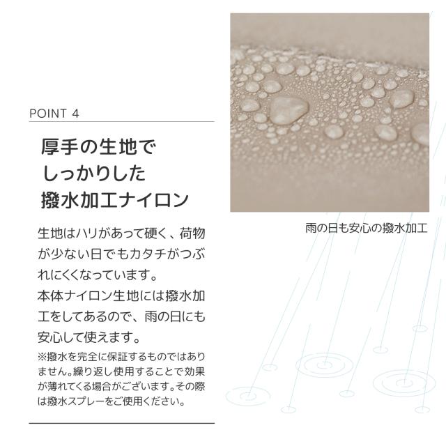 本体ナイロン生地には撥水加工をしてあるので、雨の日にも安心して使えます。