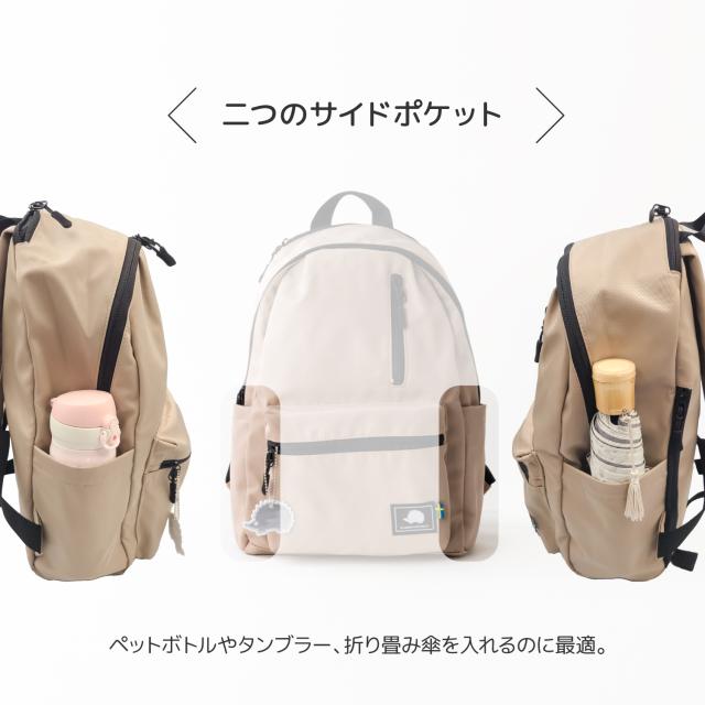 外側ポケットは全部で6個。サイド2個のポケットはペットボトルやタンブラー、折り畳み傘を入れるのに最適。