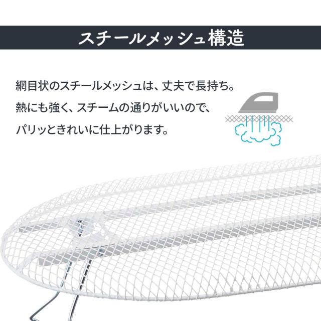 スチームが抜けるから、仕上がりきれい!軽々と持ち運びできるスタンダードな形状のアイロン台。