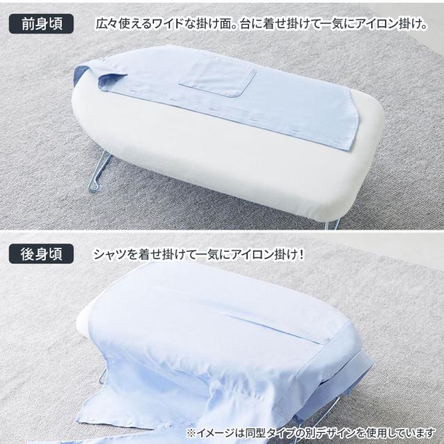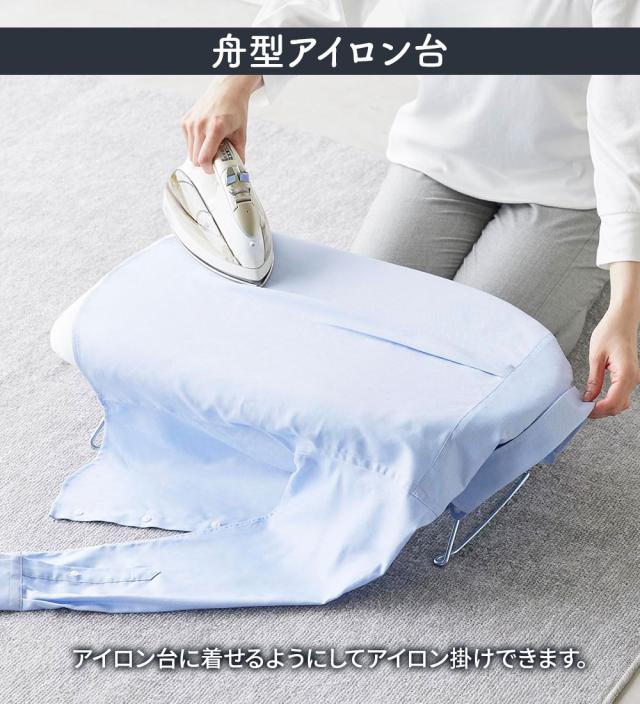 舟型アイロン台シャツやブラウスを台に着せるようにしてアイロン掛けができます。