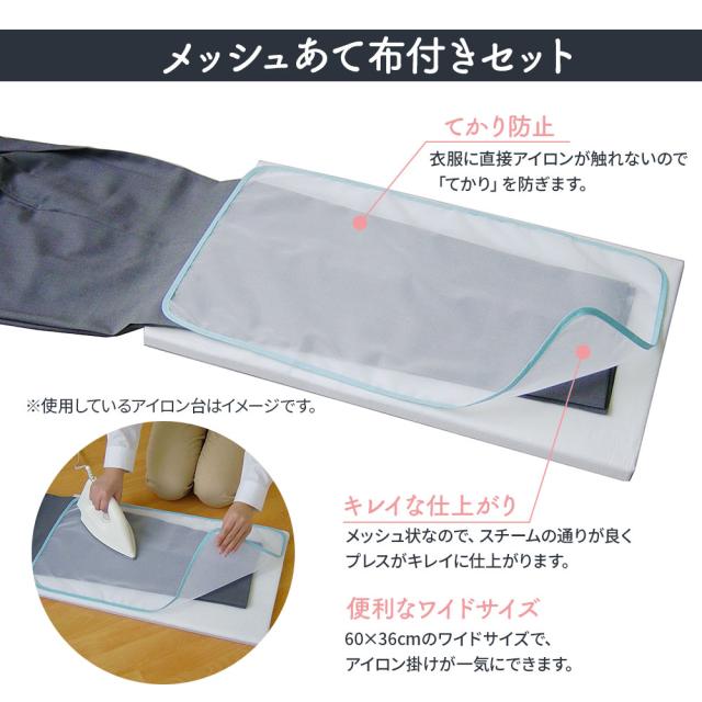 メッシュ加工で当て布の下の衣服が透けて見えるからアイロン掛けしやすく便利。