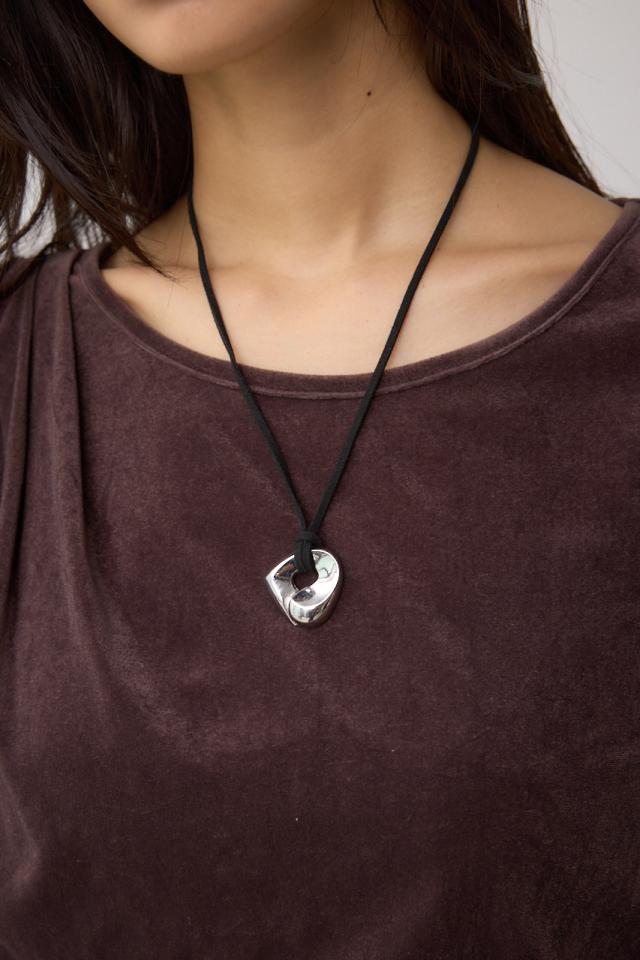 スエード調のコードに、立体的なメタルチャームをあしらった洗練デザインのネックレス。