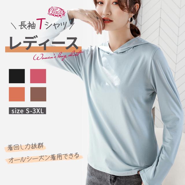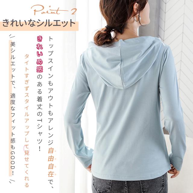 パーカー Tシャツ レディース 長袖 Tシャツ フード付き 綿 薄手 おしゃれ 可愛い きれいめ 体型カバー カジュアル 着心地 通勤 体型カバー 無地 リラックス