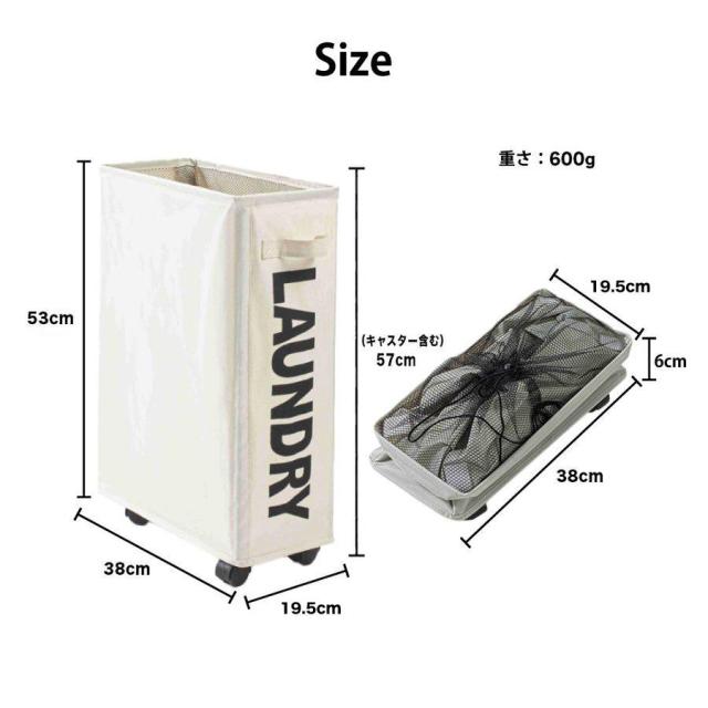 ランドリーバスケット 洗濯かご 折りたたみ おしゃれ スリム 20cm ワゴン 洗濯 脱衣 かご キャスター コンパクト 隙間 収納 軽量 大容量 洗面 かわいい シンプル