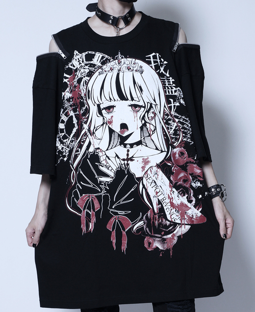 [APPAREL]/セックスポットリベンジ/キラープリンセス SHOULDER ZIP BIG カットソー 黒 x 白+赤 (F) ゴスロリ・パンク/SEX POT ReVeNGe
