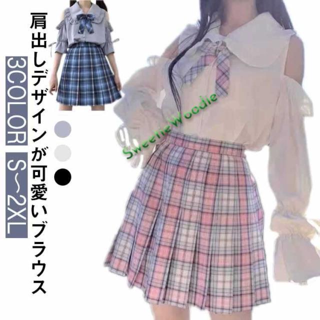肩出し 服 量産型 レディース 衣装 地雷系 ブラウス リボン 病みかわ シャツ トップス JK コスプレ レースアップ 学生 女子高生 ロリータ オ