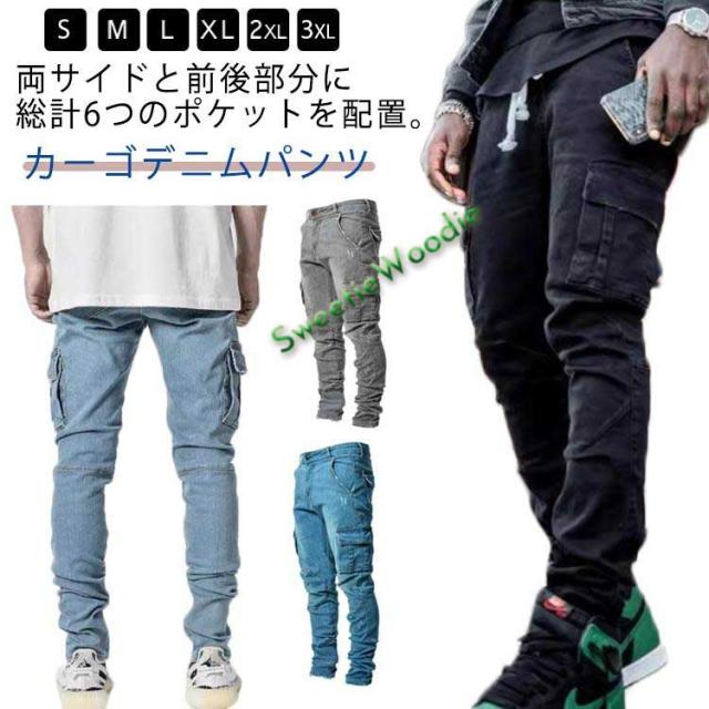 大きいサイズ カーゴパンツ ジーパン ジーンズ タイト スキニー スキニーデニム 作業着 ダメージ ストレッチ 細身 スリム デニムパンツ ジョガーパ