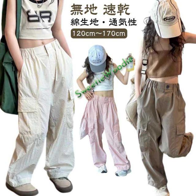パンツ 女の子 春夏 ポケット付き キッズ 速乾 ストリート ズボン 韓国子供服 おしゃれ 130 ジュニア カーゴパンツ ダンス衣装 ヒップホップ