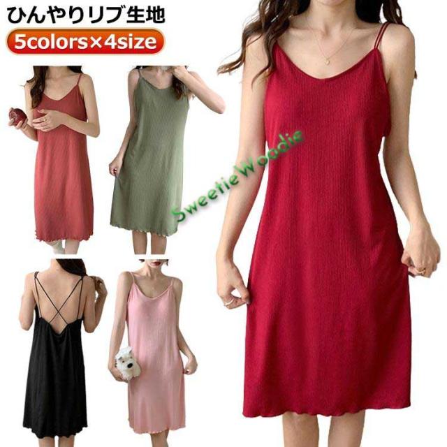 キャミソール ワンピース キャミソール キャミワンピ インナーキャミソール 涼感 ロング カップ付き インナー レディース ペチコート 透け防止 ロン