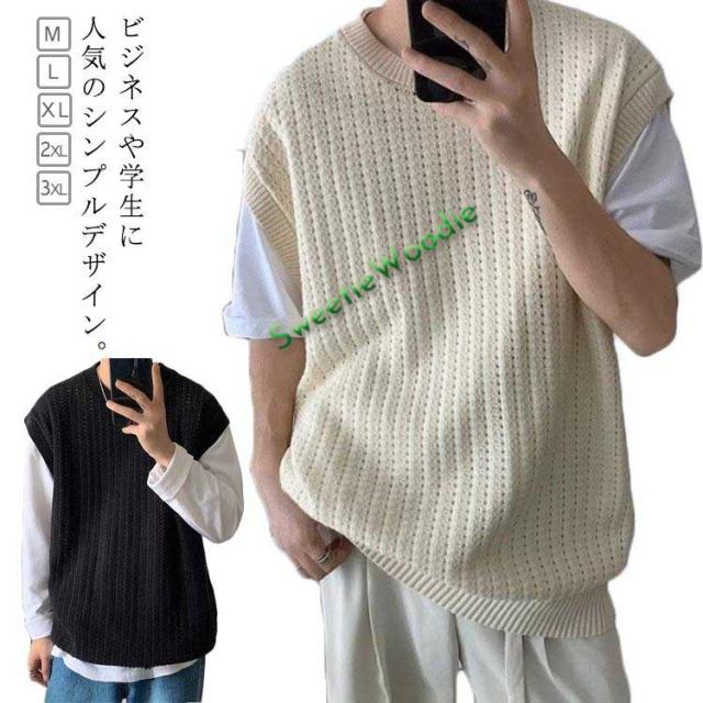 ニット ベスト メンズ 春夏 学生 サマーニットベスト メンズ 大きい 韓国 おしゃれ クルーネック ゴルフ ベスト プルオーバー 透かし編み ニット