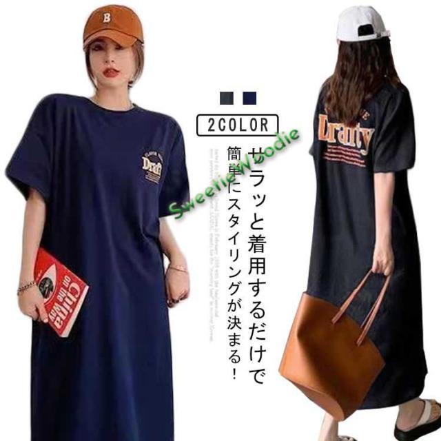 スリット入り ワンピース 体型カバー Tシャツワンピ Tシャツワンピ レディース 半袖 ゆったり ロングワンピース オーバーサイズ ルームウェア マキ