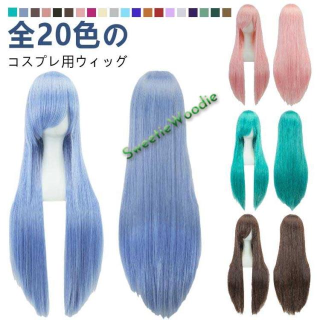 コスプレ ロング アニメ 全頭かつら 黒髪 ハロウィン ギャル カラーウィッグ 紫 パープル カラーウィッグ 耐熱 フルウィッグ ブラック ウイッグ