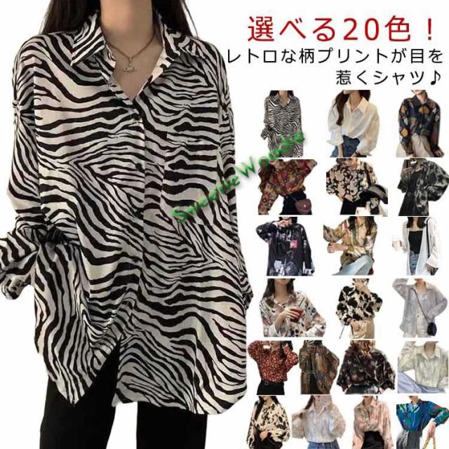 総柄 レディース 長袖シャツ ブラウス ゆったり 長袖 レトロ 大きいサイズ 花柄 トップス モード 幾何柄 柄シャツ オーバーサイズ カジュアル シ