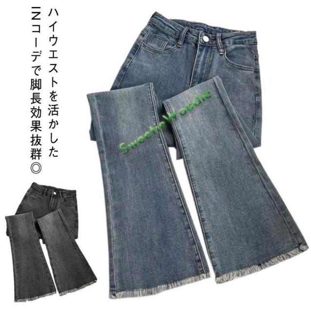レディース フレア デニムパンツ きれいめ ジーパン 大きいサイズ ジーパン オールシーズン ロングパンツ ポケット 春夏 秋冬 ボトムス 着回し 伸