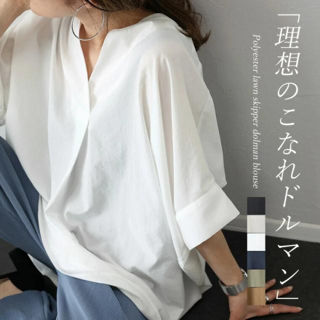 レディース Vネック プルオーバー シャツ 新作 無地 ゆったり シルエット スリム 夏物 トップス